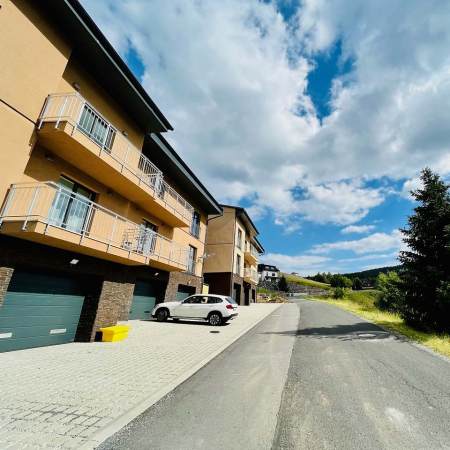Apartmány Na Výhledech si vás podmaní svou prostorností a balkóny, ze kterých si vychutnáte slunečné dny a malebné výhledy do krajiny. Moderní apartmány s vlastní garáží se nachází několik set metrů od Skiareálu Klínovec. Na lyžích tak budete jedni z prvních. Mimo zimu jsou skvělým výchozím bodem pro veškeré horské aktivity.